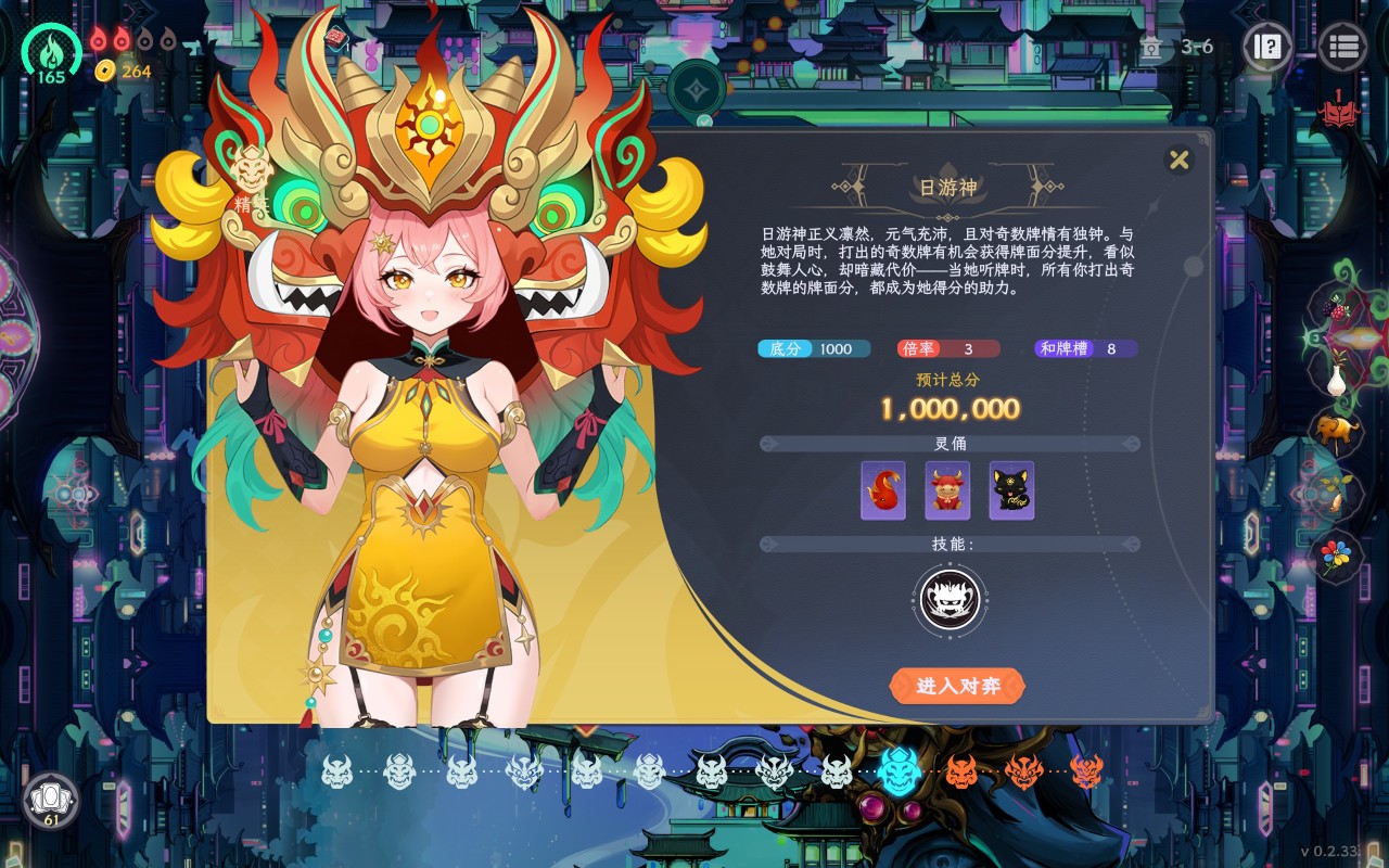 例如,全新的梼杌。叠牌面基础底分效果很不错,越早摸到培养叠分的收益越高,作为成长型的灵俑来说每一次叠加的条件也比较宽松,配合黑无常收回牌的技能还挺好用的。