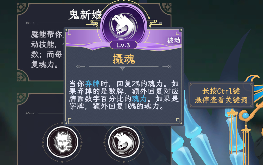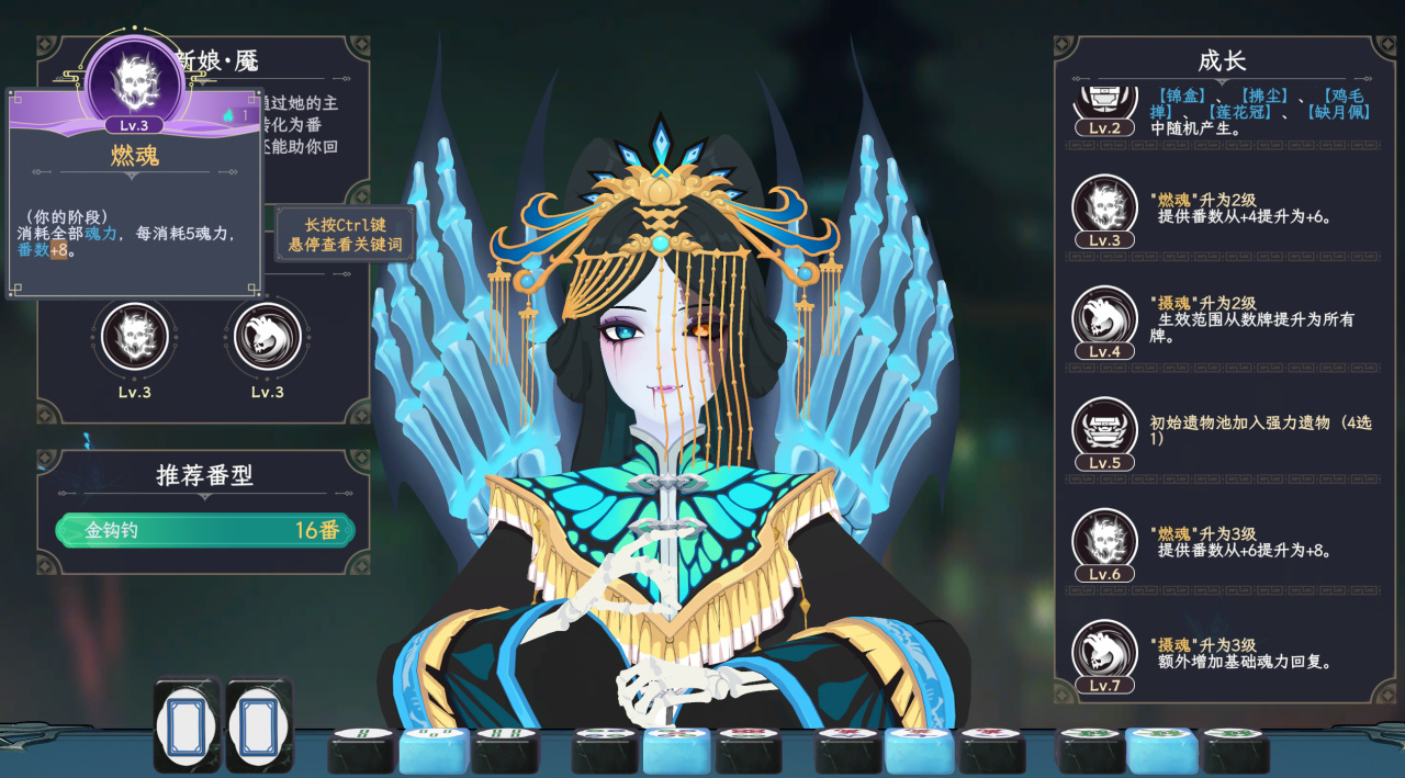 当看到是燃烧魂力增加番数,第一反应就是《杀戮尖塔》中的烧牌玩法,并且鬼新娘两个技能分别具备烧魂力和恢复魂力,基本上构筑一下就可以无限永动机。玩法在体验上相当舒服。