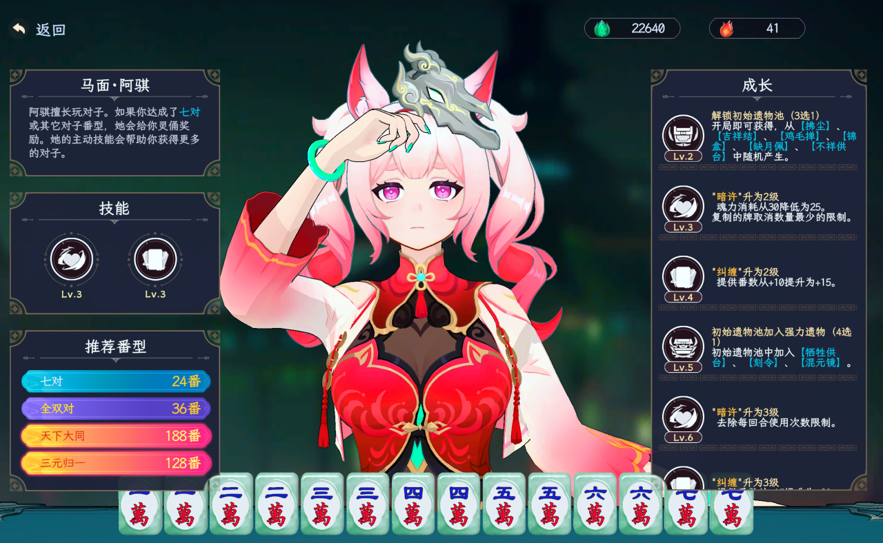 而游戏主要的目的则是通过打出不同的组合积累对应的分数,通过提高低分,番数,倍率等打出和更高分数.....
