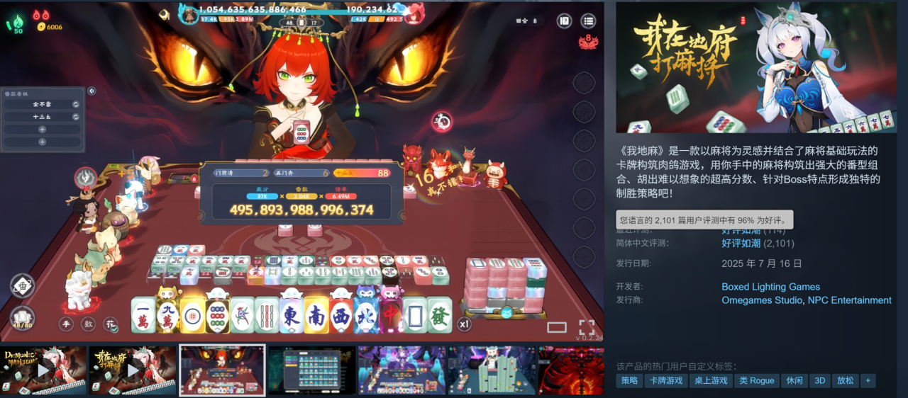 将Rogue元素与传统中国神话融入到了经典娱乐项目麻将之中的《我在地府打麻将》。