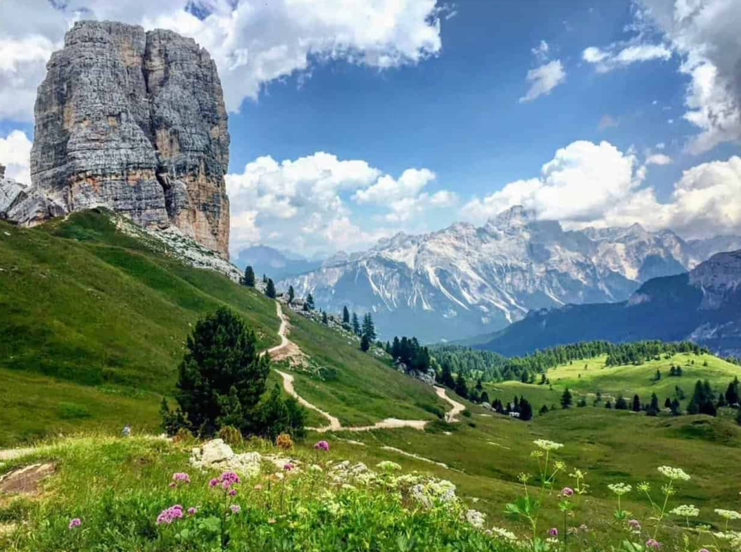 五塔山(Cinque Torri)由五座相连的岩石山峰组成,这里是一战遗址,设有一战博物馆与纪念设施,适合初级徒步与观景拍照。
