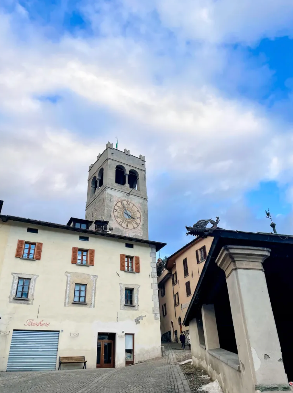 老城中心(Piazza del Kuerc)中世纪钟楼及 Kuerc 带顶议事厅是地标。石板街巷遍布壁画建筑、贵族宅邸,Combo 古桥连接老城与滑雪区,适合慢逛拍照。