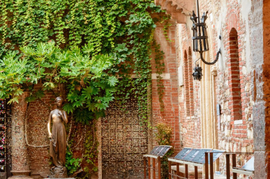 朱丽叶故居(Casa di Giulietta)是13世纪建筑,莎士比亚笔下罗密欧与朱丽叶幽会的地方。庭院有朱丽叶青铜雕像,传说触摸其右胸可带来美好爱情,因此铜像右胸被游客摸得锃亮。
