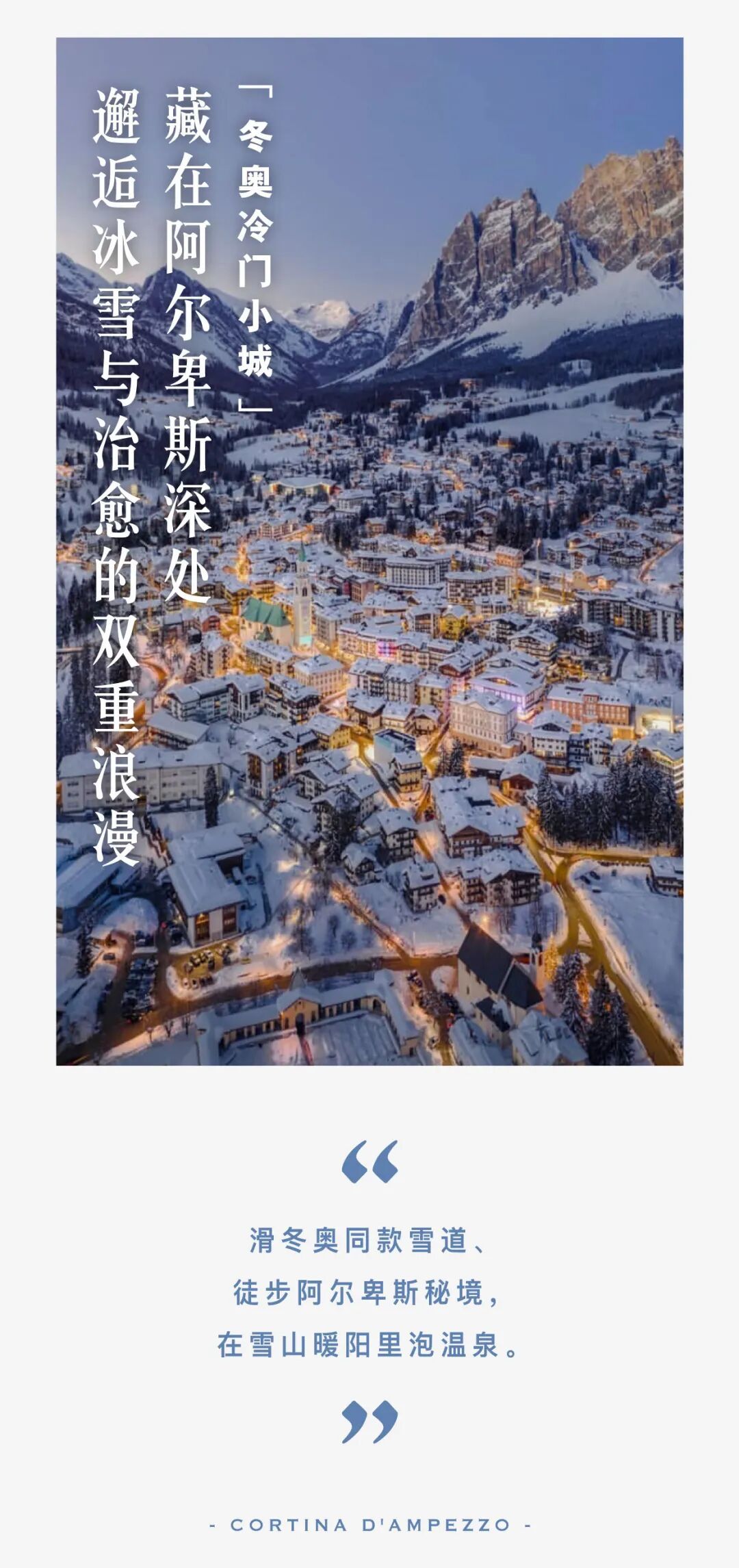 随着奥地利到多洛米蒂山区的铁路陆续修成。绝美的雪山风光与绝佳的雪质条件,很快吸引了王室的目光。这里也随之成为他们冬季专属的私密度假秘境。上一次举办冬奥会冬奥会更是吸引了一批老钱贵族前来度假。