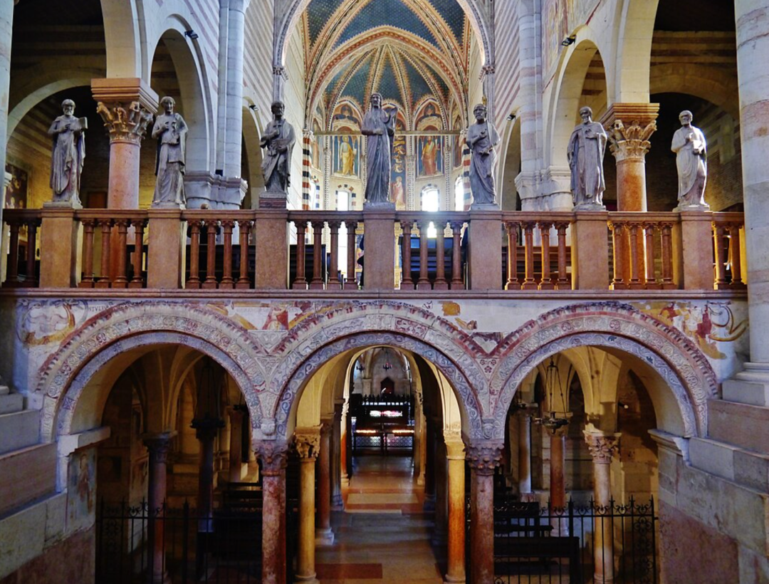 圣柴诺圣殿(Basilica di San Zeno)是罗曼式建筑巅峰,内部金色祭坛画精美绝伦,教堂前的庭院安静古朴,游客较少,适合拍照与静心参观。
