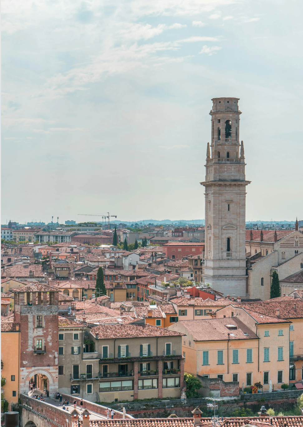 朗贝尔蒂塔(Torre dei Lamberti)登顶可360°俯瞰古城红瓦屋顶、竞技场与阿迪杰河全景,塔内有古老钟组,部分时段可听钟声。