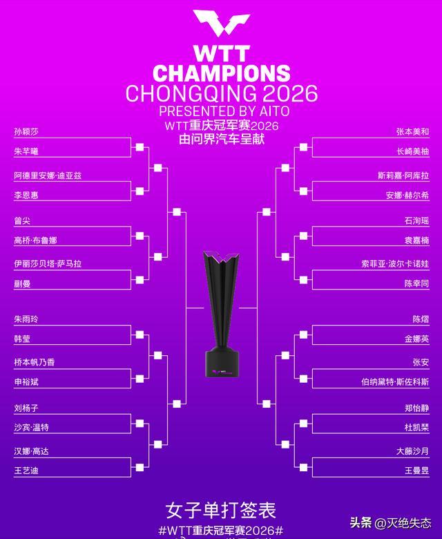 女单:张本美和(日本)、大藤沙月(日本)、申裕斌(韩国)、伊丽莎贝塔·萨马拉(罗马尼亚)、朱雨玲(中国澳门)、韩莹(德国)等。