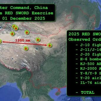 美媒《空军与太空军》透露,2025年年底中国空军在西北上空举行了一场大规模对抗演练,这次演练持续时间长达6周,演练空域横跨2000余公里,参与演练的战斗机超过200架,最高的时候接近250架,有至少8座空军基地作为演练的陆地支撑,美媒认为因此军演应该是中国空军“红剑”年度对抗演练。
