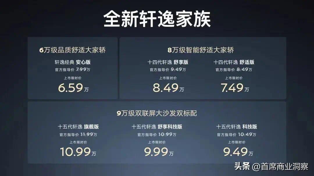 比如像轩逸这种在大众市场有着很多客户的经典车型,其安心版车型在优惠之后,价格直接来到了6.59万,直接跌破7万大关。