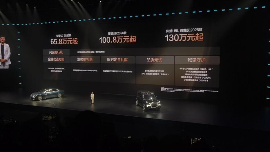 仰望汽车还推出闪充畅行礼遇,2026年5月11日(含)前支付2026款仰望车型定金的用户,自交付之日起,可享受一年内在比亚迪闪充充电桩免费充电权益(限非营运车主)。